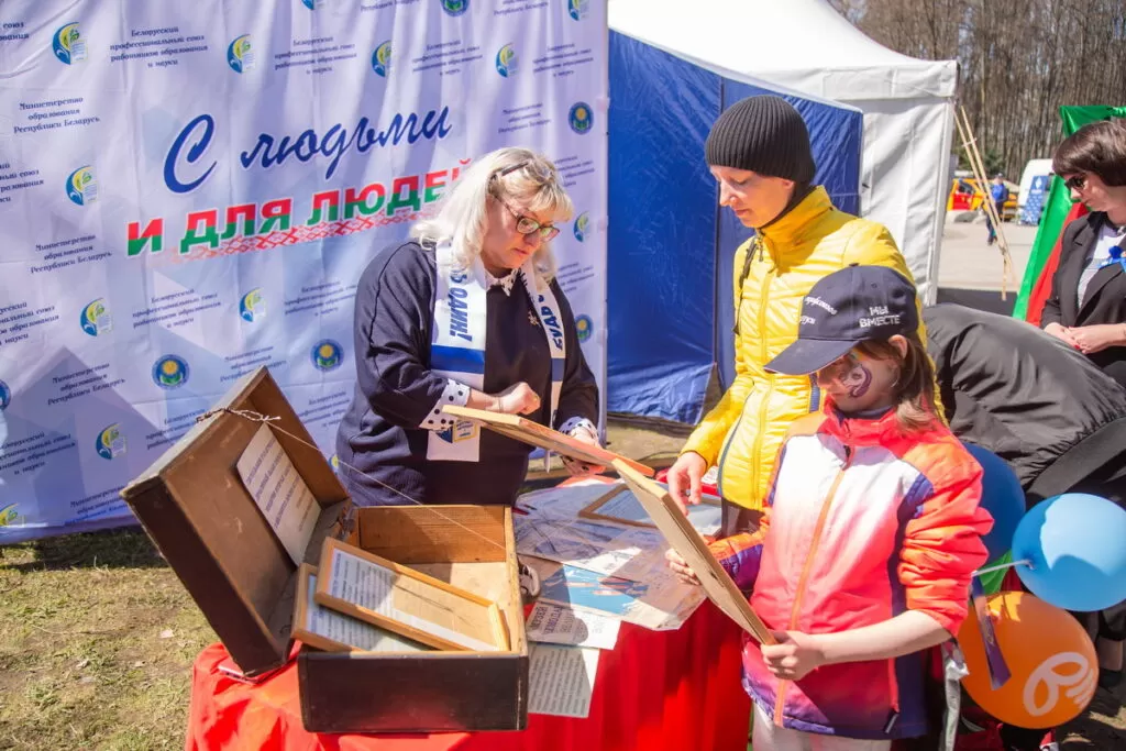 – В Беларуси живут очень трудолюбивые люди. Сегодня, находясь в парке Победы, мы чувствуем гордость за наших людей, гордость за страну. Мы подготовили многочисленные интерактивные площадки, чтобы показать профессию учителя, показать, что он не только учит наших детей, но и воспитывает их. К мероприятию готовились серьезно, как всегда готовятся педагоги. Праздник труда ценим еще и за то, что можем каждому нашему человеку – нянечке в детском саду, доктору наук, профессору – сказать огромное спасибо за труд. Площадка у нас получилась максимально разносторонней. Нам хотелось представить самые разные направления, начиная от дошкольных учреждений. Большое внимание уделили Году исторической памяти. Накануне представители отраслевого профсоюза со всех областей собрали имена и адреса педагогов-участников ВОВ. Прямо на интерактивной площадке каждый может выбрать героя и отправить ему поздравительную открытку с Днем Победы, – поделилась лидер профсоюза работников образования.
