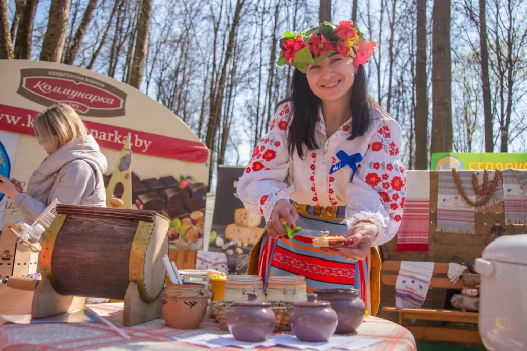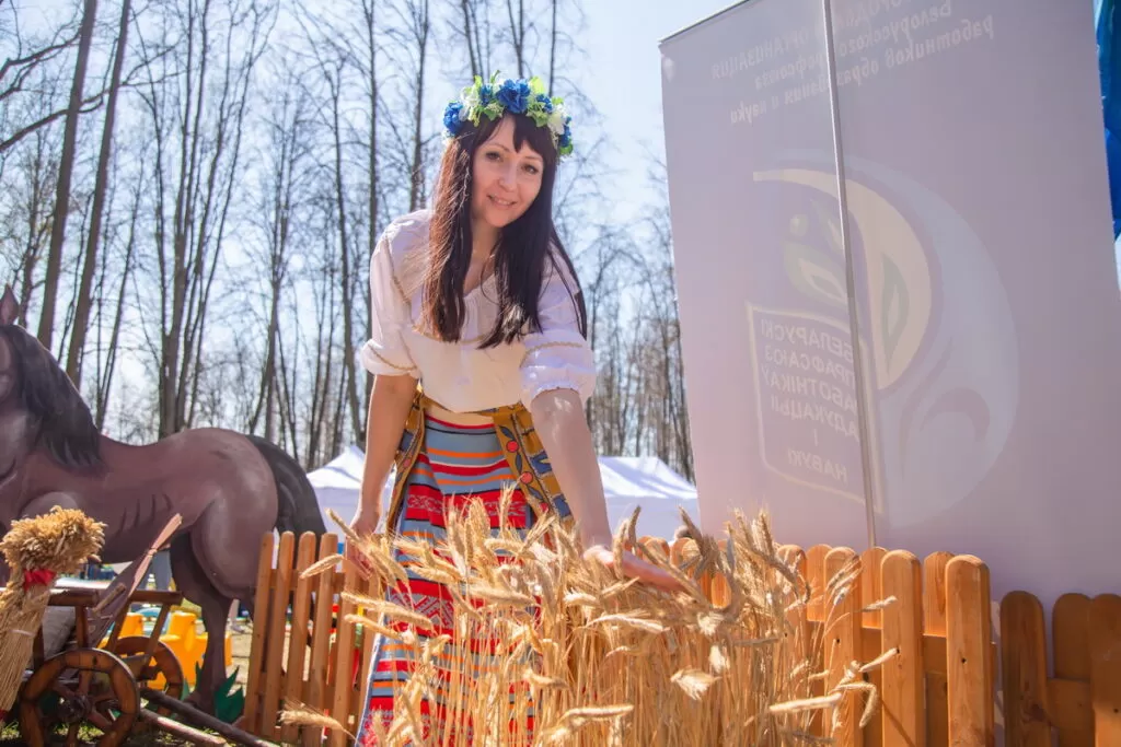 На площадке Белорусского профессионального союза работников агропромышленного комплекса каждый может почувствовать себя сельским жителем. Гостей угощают соками, сырами, вареньем, медом и другими натуральными отечественными продуктами. Задает тон празднику танцующая ростовая пчела.