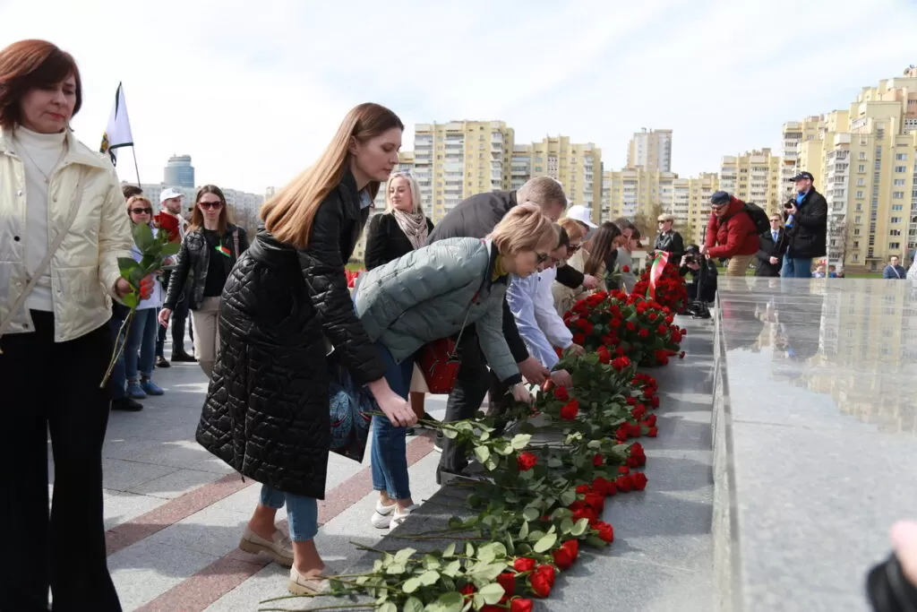 В этот раз празднование Первомая в Минске началось с торжественных мероприятий – возложения цветов у стелы «Минск – город-герой». Люди здесь начали собираться с самого утра, некоторые специально приехали из других областей и регионов. В церемонии приняли участие руководство и представители ФПБ, Администрации Президента Республики Беларусь, Мингорисполкома и министерств.