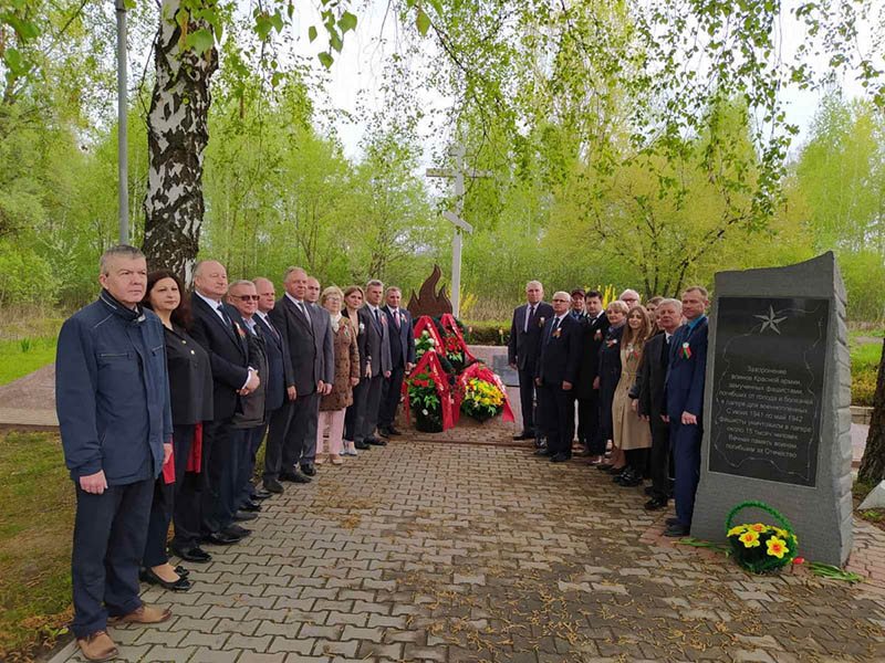 Сегодня у братской могилы брестского лагеря-госпиталя «Ревир» представители областных организаций профсоюзов, ветеранов и БРСМ провели символический митинг, почтили минутой молчания жертв Великой Отечественной войны.