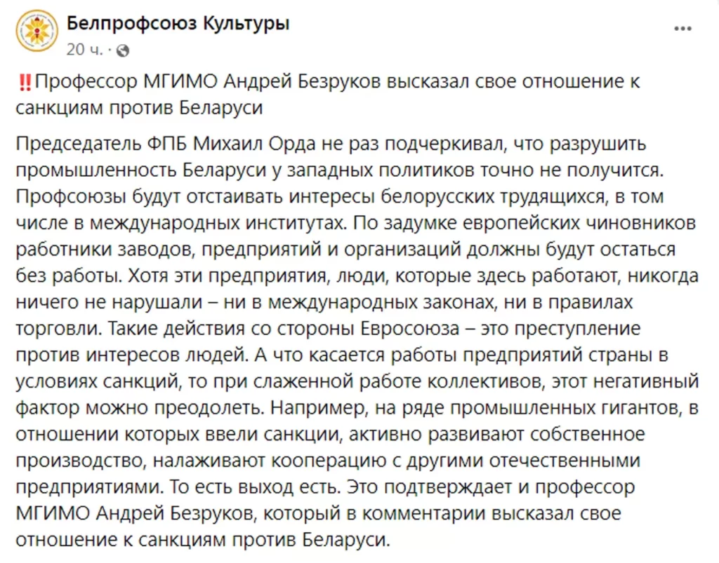 Федерация профсоюзов Беларуси продолжает отстаивать интересы наших трудовых коллективов, в том числе в международных институтах. Профсоюзы доказали, что санкции нарушают права работников наших предприятий.