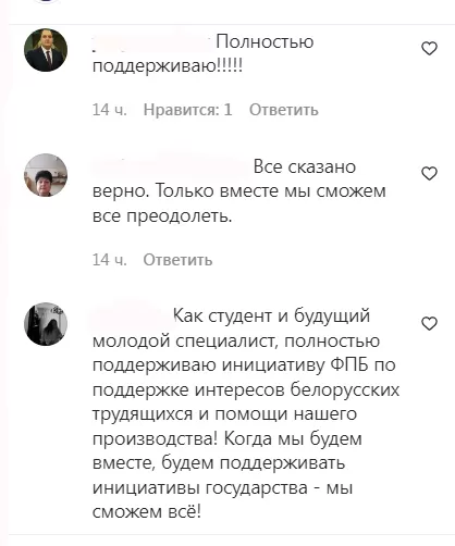 – Как студент и будущий молодой специалист, полностью поддерживаю инициативу ФПБ по поддержке интересов белорусских трудящихся и помощи нашего производства! Когда мы будем вместе, будем поддерживать инициативы государства – мы сможем все!