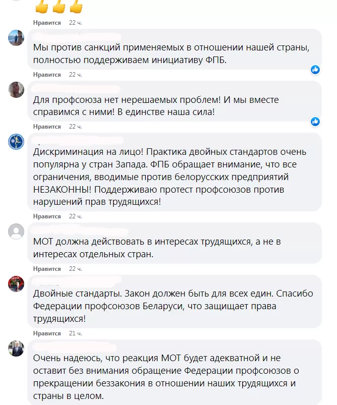 – Дискриминация на лицо! Практика двойных стандартов очень популярна у стран Запада. ФПБ обращает внимание, что все ограничения, вводимые против белорусских предприятий НЕЗАКОННЫ! Поддерживаю протест профсоюзов против нарушений прав трудящихся!