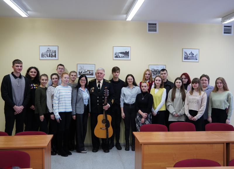 В его исполнении прозвучали проникновенные стихи и песни, в том числе и собственного сочинения, через которые он поделился с молодыми людьми своим богатым жизненным опытом.