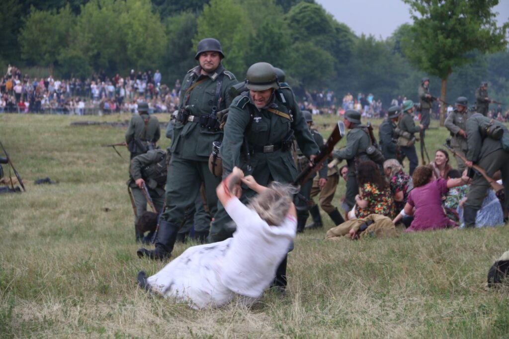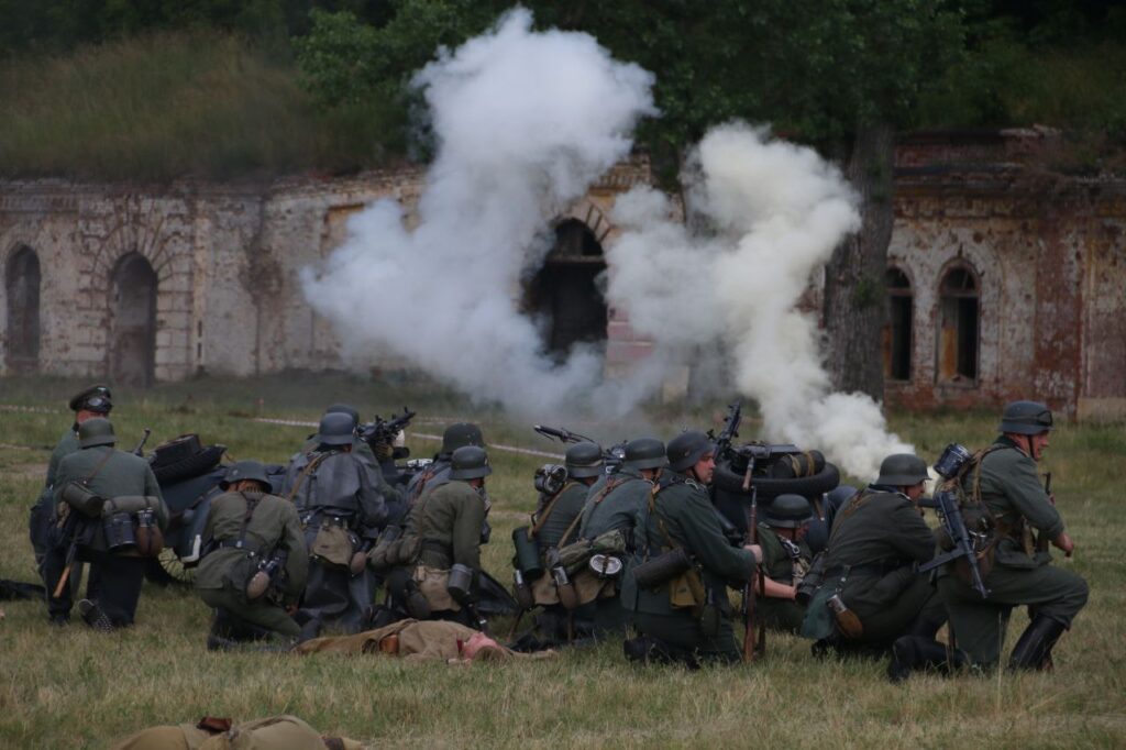 Слава Богу, сегодня это все не по-настоящему. Реконструкторы из более 50 военно-исторических клубов из разных стран воссоздали оборону Брестской крепости. Реконструкция обороны Брестской крепости была столь реалистично исполнена, что от звуков взрывов зрители вздрагивали, а от вовлеченности в действо подкатывали слезы.