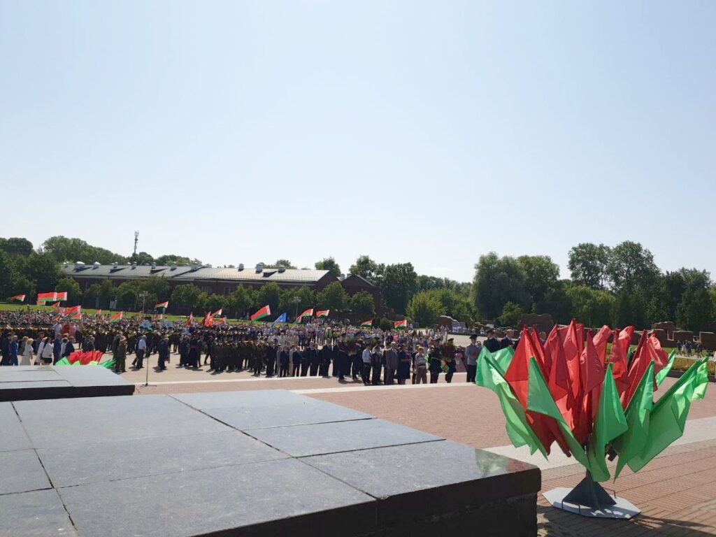 Колонна автомобилей с государственной символикой направилась для проведения торжественного митинга к монументу «Вечная память погибшим в борьбе с фашизмом», расположенном поселке Мухавец. По пути следования участники акции посетили музей под открытым небом «Аллея памяти», где собраны возвращенные из Европы демонтированные памятники погибшим на польской территории воинам Красной армии.