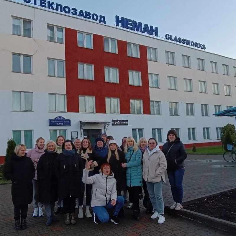 Первая остановка – стекольный завод «Неман», где члены профсоюза увидели полностью весь цикл производства. Ведь именно сам процесс появления изделия из стекла производит сильное впечатление, очень интересно наблюдать за тем, как из раскалённого пламени создаются стеклянные фигуры разной формы и цвета. Посетили стекольный музей, где собраны редкие экспонаты стекольной промышленности Беларуси и узнали об истории города, связанной с развитием стекольного производства.