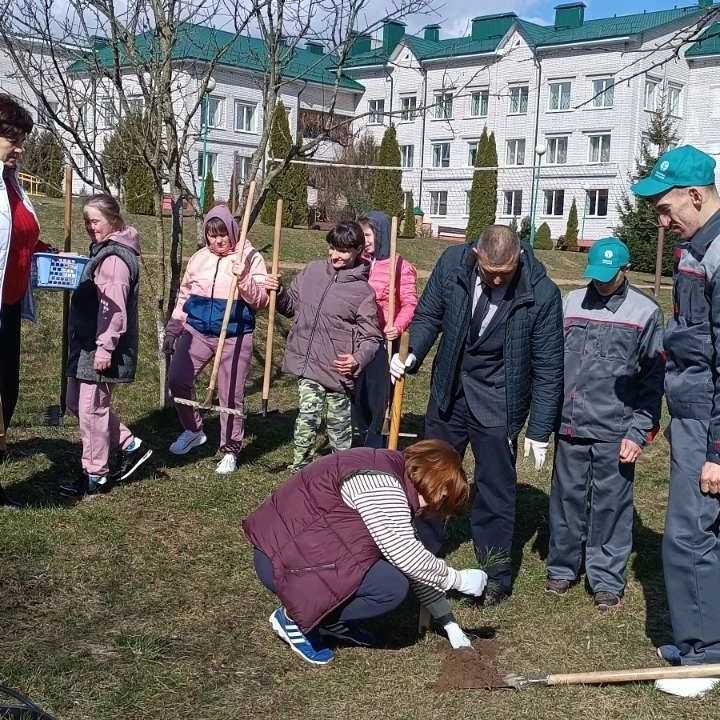 Члены профсоюза, профактив первичной профсоюзной организации вместе с воспитанниками ГУ «Городищенский дом-интернат для детей-инвалидов с особенностями психофизического развития», в рамках месячника по благоустройству, провели акцию»Посади дерево».