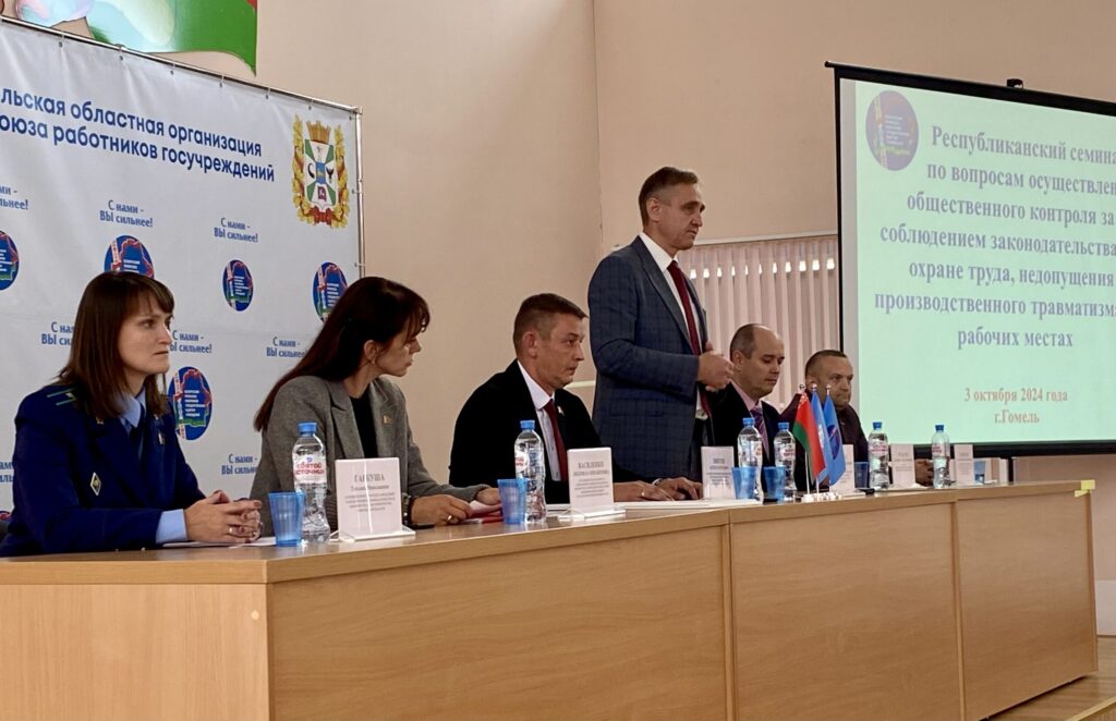В Гомеле прошёл Республиканский семинар по вопросам осуществления общественного контроля за соблюдением законодательства об охране труда, недопущения производственного травматизма на рабочих местах.