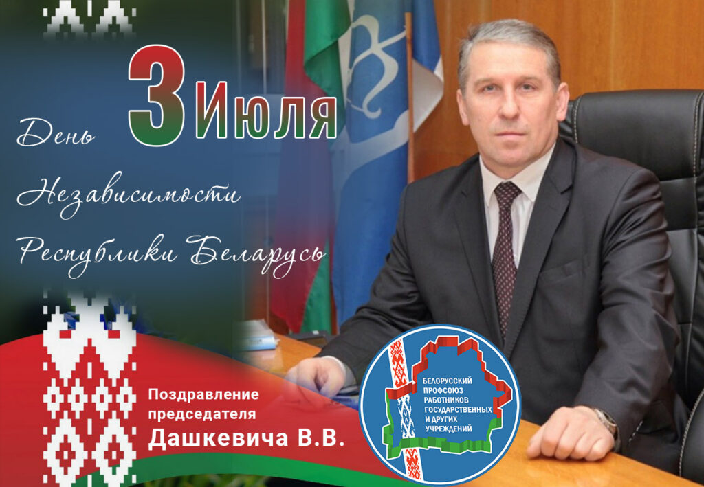От имени Брестской областной организации Белорусского профессионального союза работников государственных и других учреждений и от себя лично от всей души поздравляю вас с Днём Независимости Республики Беларусь!