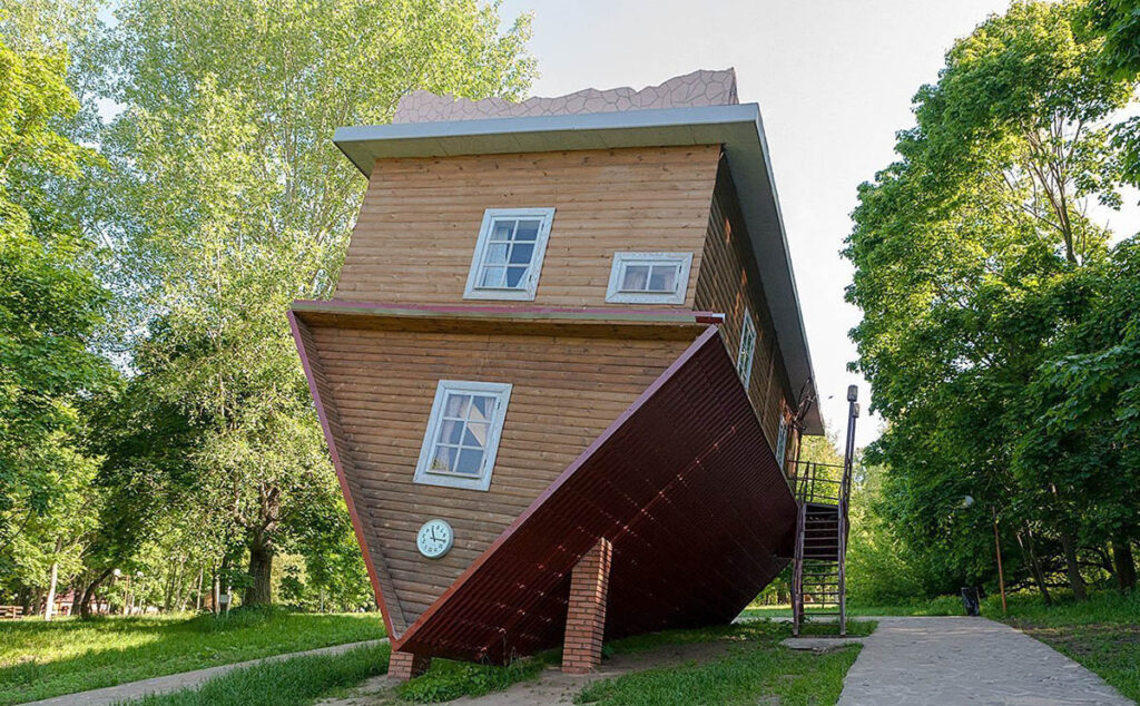 Одним из самых запоминающихся и притягательных мест маентка стал, безусловно, перевернутый дом. Это уникальное сооружение, которое бросает вызов законам физики, вызвало у экскурсантов настоящий шквал эмоций. Ощущение антигравитации, когда привычное пространство переворачивается с ног на голову, подарило незабываемые впечатления и стало поводом для множества шуток и фотографий.