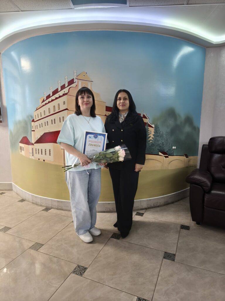 За многолетний добросовестный труд, защиту социальных и трудовых интересов членов профсоюза, активное продвижение профсоюзной жизни Дине Михайловне вручена Грамота Брестской областной организации Белорусского профессионального союза работников государственных и других учреждений